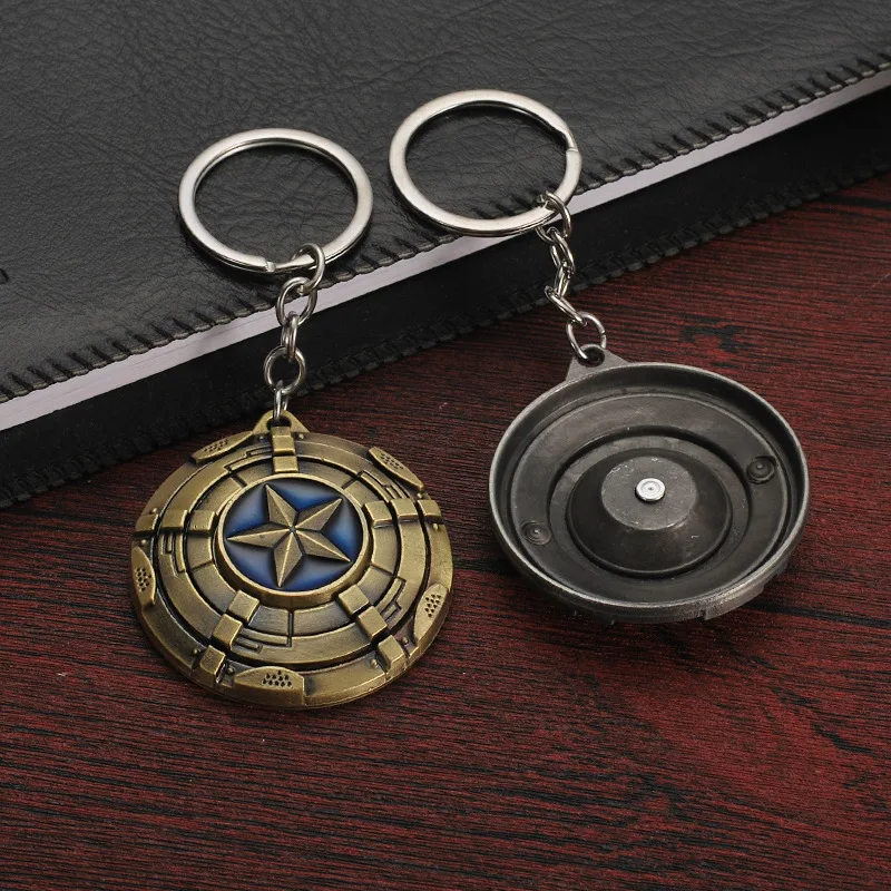 Rotating Captain America Shield Car Keychain Men's Kids Metal the Avengers Keychains Pendant Toys
