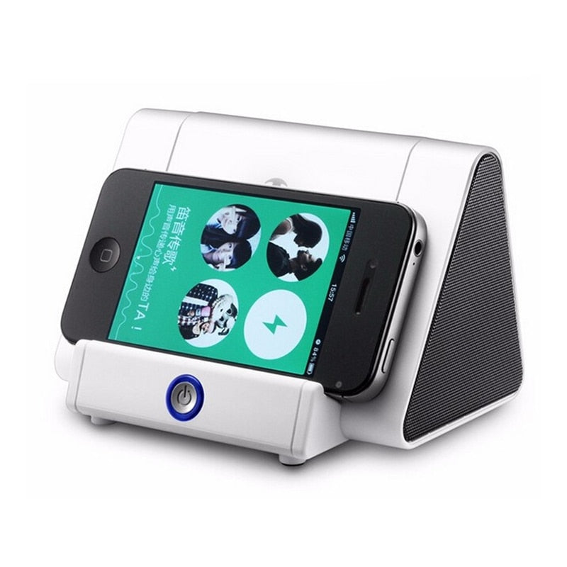 Simply phone, tablet, placed on the mutual inductance speaker can amplify the sound. In operation, the phone must be placed on the speakers.With Aux interface can also be connected to a computer using a cell phone, audio cable with their own needs.Currently, in addition to for Huawei glory 6 Plus, millet note, millet 4, the product is compatible with most brands have external speakers tablet series.