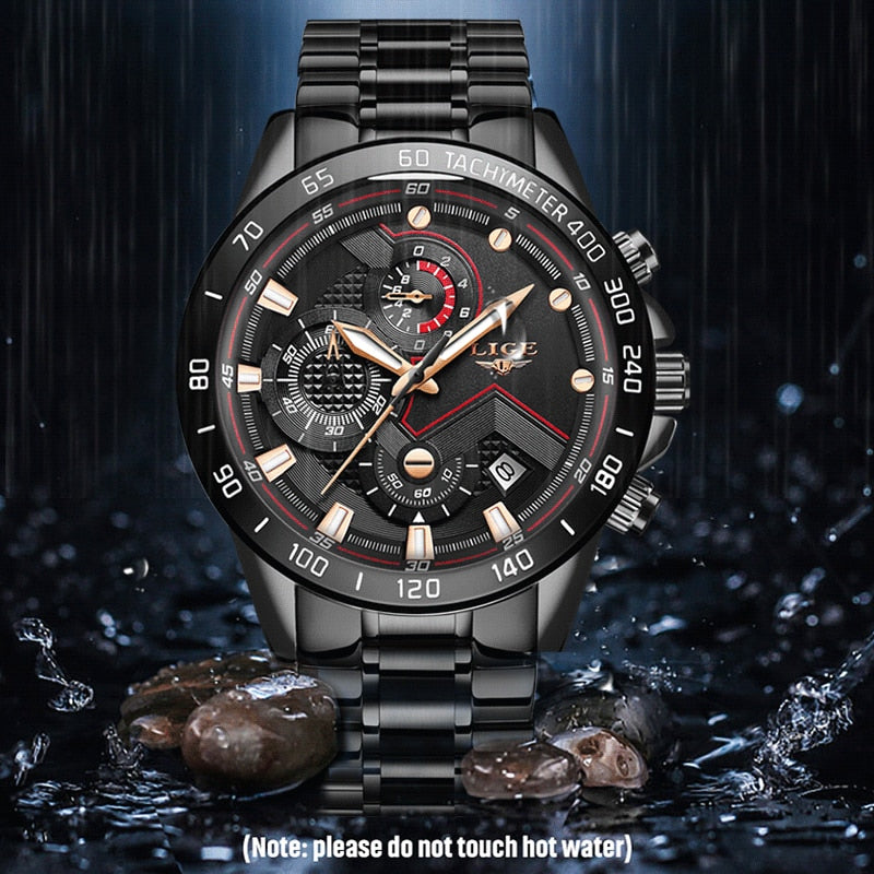 2020 LIGE Fashion Mens Watches Stainless Steel Top Brand Luxury Sport Chronograph Quartz Watch Men Black Watch Relogio Masculino